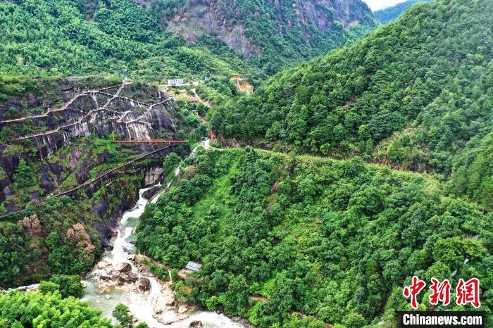 航拍江西上饒望仙峽谷風光,秀峰蒼郁峻拔。(資料圖) 劉占昆 攝