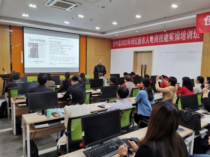 “電商可以創(chuàng)造兩個(gè)價(jià)值,哪兩個(gè)?經(jīng)濟(jì)價(jià)值和社會(huì)價(jià)值,希望我們資中這個(gè)班通過學(xué)習(xí),通過自己不斷的努力也可以有這樣的一些優(yōu)秀人才出現(xiàn)?!?月10日,四川省內(nèi)江市資中縣2023年網(wǎng)紅新農(nóng)人電商技能實(shí)操培訓(xùn)班在資中縣商務(wù)發(fā)展事務(wù)中心電商培訓(xùn)室開班。培訓(xùn)課上,四川寰宇鴻森科技有限公司講師呂亞軍為來自全縣各鎮(zhèn)的109名網(wǎng)紅新農(nóng)人、農(nóng)業(yè)生產(chǎn)者、電商愛好者、電商創(chuàng)業(yè)者、電商從業(yè)者等學(xué)員進(jìn)行授課。