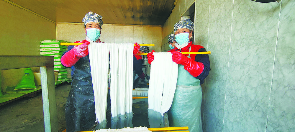 “我家里五口人,只有18畝(即1.2公頃)旱地,僅夠溫飽。一開始我們夫妻倆就在縣城收廢品,想著攢點(diǎn)小本錢做生意。2009年開始收洋芋,并一個(gè)村一個(gè)村地貼廣告??墒呛髞戆l(fā)現(xiàn),收回來的洋芋短時(shí)間內(nèi)根本賣不出去,那怎么辦呢?我們就想辦法,把洋芋加工成了淀粉和粉條,方便儲存。再后來,面對沒有銷路的情況,我和丈夫就推著架子車沿街叫賣。那個(gè)時(shí)候非常辛苦,晚上要加工粉條,白天要沿街叫賣,每天24小時(shí)幾乎沒有休息的時(shí)間?!闭f起過去的坎坷經(jīng)歷,任成香的眼里不禁泛起了淚光。