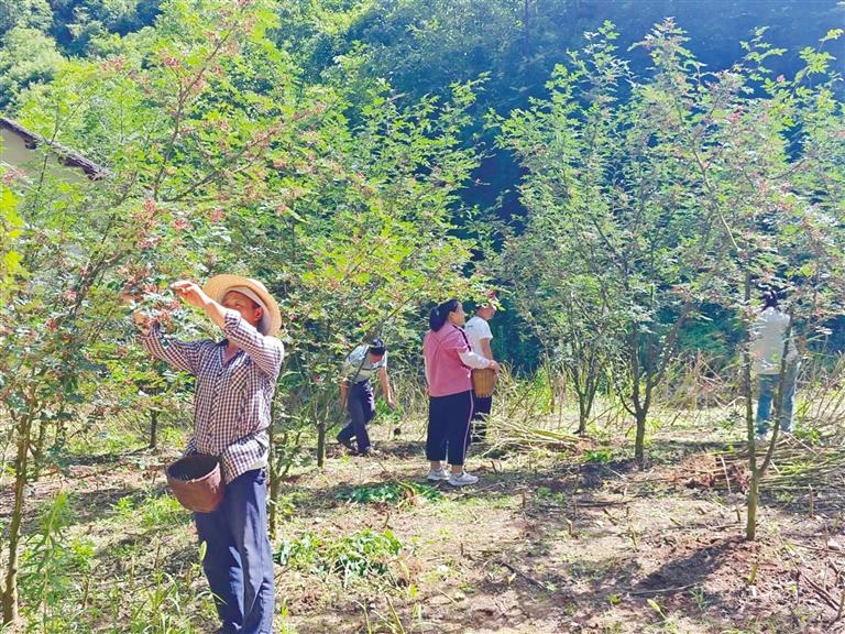 “近年來,為了扶持我們村發(fā)展花椒產(chǎn)業(yè),縣上給我們提供花椒苗,鎮(zhèn)政府每年給我們送有機肥。目前,我們村花椒種植面積1200余畝,不僅吸納鄰村和本村勞動力50余人通過務工實現(xiàn)增收,而且還帶動115戶群眾發(fā)展花椒種植,年戶均增收4000余元?!彪p建村黨支部副書記黃仁山說。
