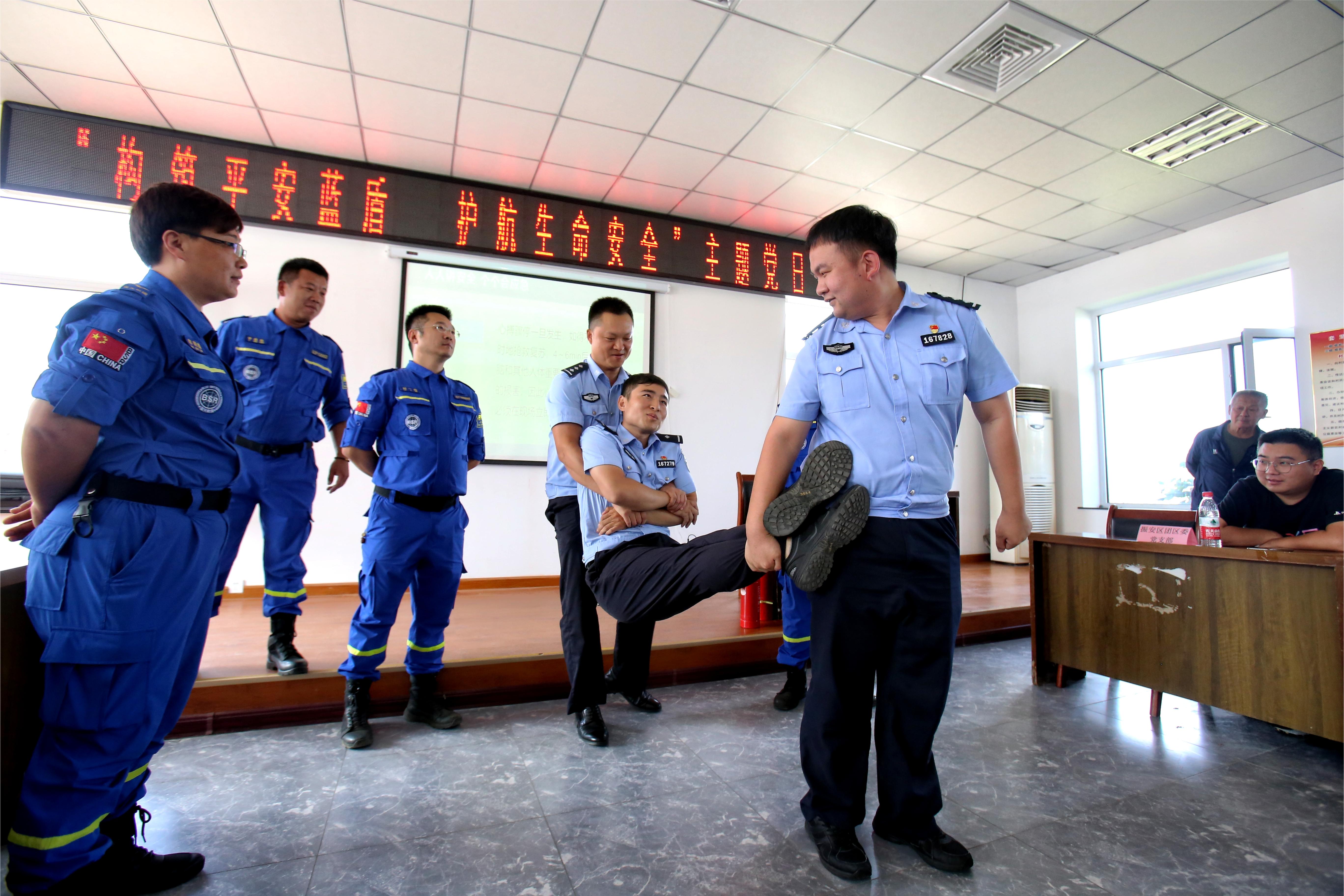 黨員民警模擬胸外按壓急救方法