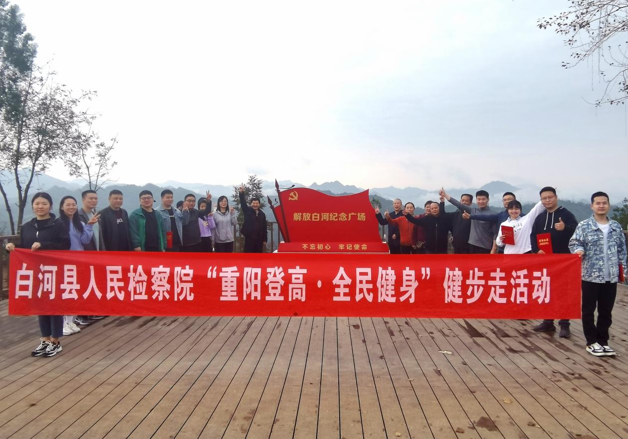 金秋十月爽,九九話重陽。為大力弘揚(yáng)孝親敬老的傳統(tǒng)美德,10月23日,陜西省安康市白河縣人民檢察院組織退休老干部和全體干警職工到解放白河戰(zhàn)斗革命遺址紗帽山,開展“重陽登高·全民健身”健步走活動(dòng)。