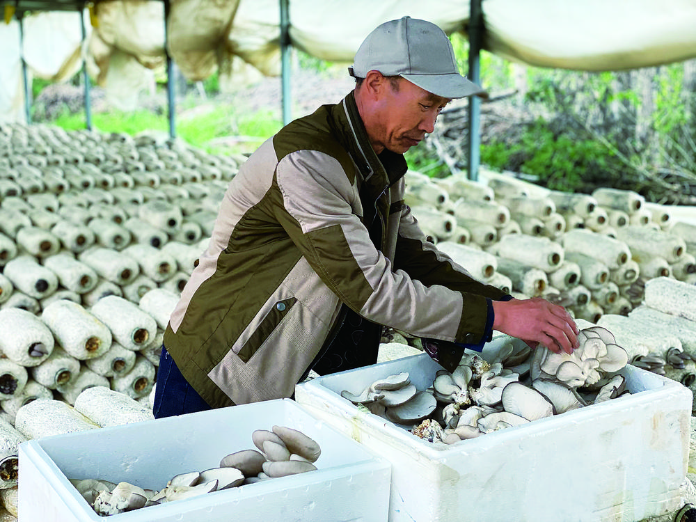 家庭農(nóng)場的主人喬吉科正帶領農(nóng)場工人采摘平菇,他們動作嫻熟且規(guī)范有序,將摘下來的蘑菇放入塑料泡沫箱內(nèi),稱重后裝車,隨后銷往縣城各菜鋪及學校食堂等地。