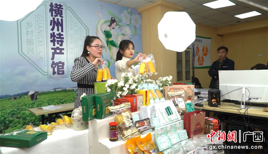 日前,在廣西壯族自治區(qū)橫州市電子商務服務中心的一家食品公司里,直播人員謝海梅正在介紹橫州本地特色農(nóng)產(chǎn)品。謝海梅說,他們在多個電商平臺推廣銷售本地農(nóng)產(chǎn)品,今年公司線上銷售額已超過60多萬元,同比增長30%左右。