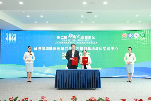 開幕式上,人民調解雜志社副總編輯孟婷婷宣讀了第二屆新時代調解論壇征文獲獎名單,與會領導為獲獎作者頒獎。本次征文共評出一等獎論文7篇、二等獎15篇、三等獎25篇、優(yōu)秀獎20篇,其后舉行了“司法部調解理論研究與人才培訓基地灣區(qū)實踐中心”簽約與揭牌儀式。