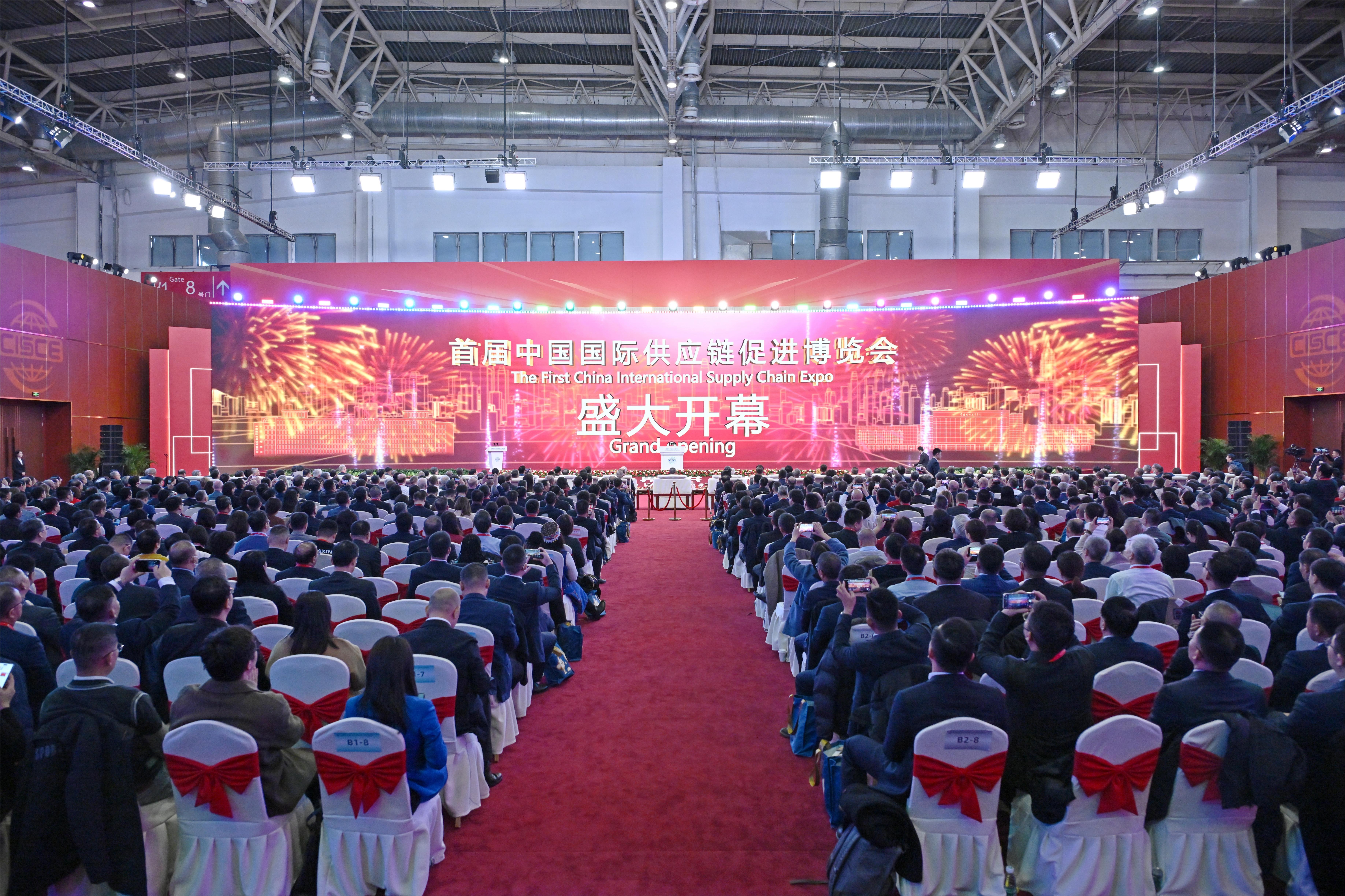 11月28日,首屆中國國際供應(yīng)鏈促進(jìn)博覽會(huì)(以下簡(jiǎn)稱“鏈博會(huì)”)開幕式暨全球供應(yīng)鏈創(chuàng)新發(fā)展論壇在北京舉辦。來自世界90多個(gè)國家、地區(qū)和國際組織的政商學(xué)等各界代表1100多人出席開幕式。