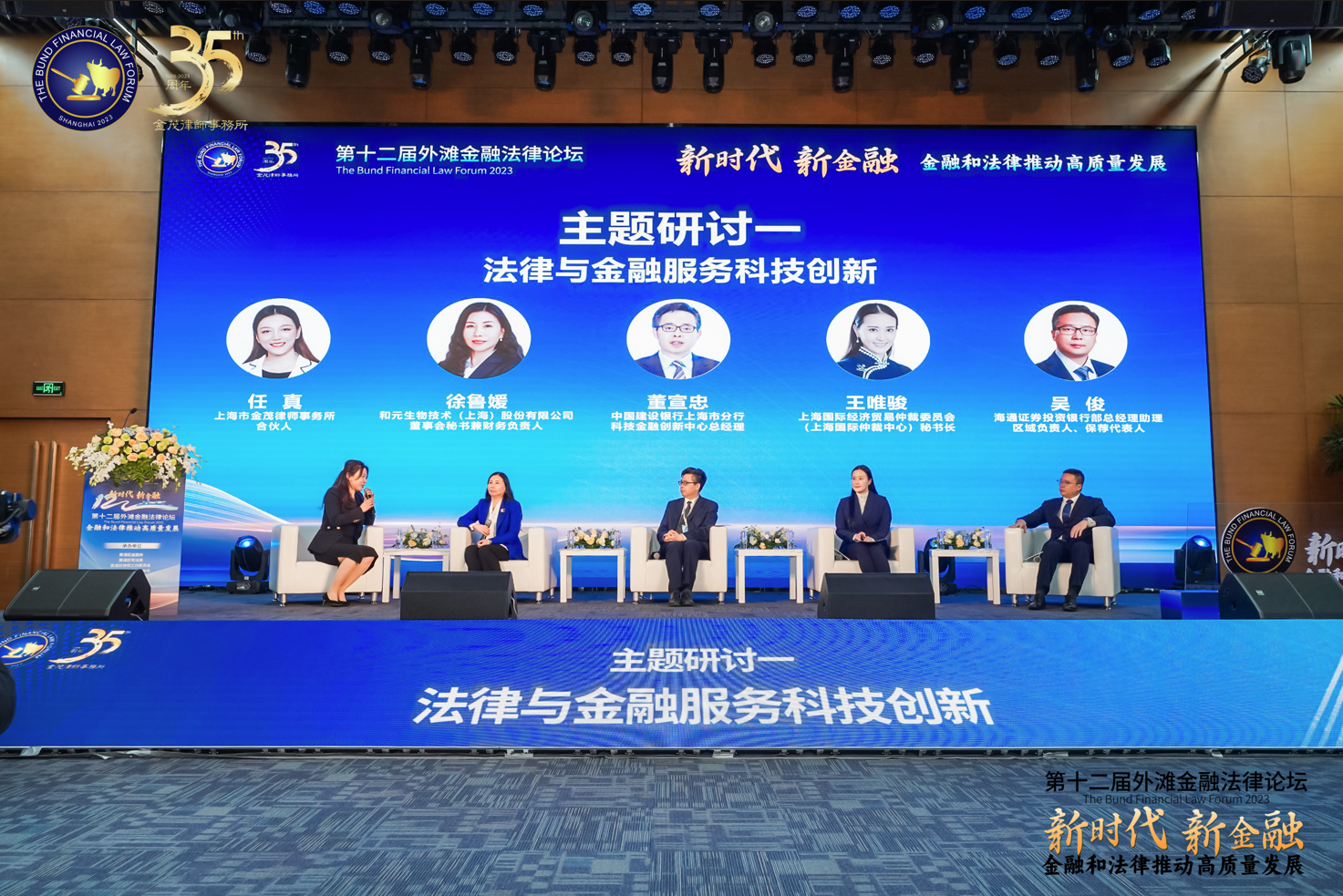 “法律與金融服務(wù)科技創(chuàng)新”主題研討環(huán)節(jié),由上海市金茂律師事務(wù)所合伙人任真律師主持,來自海通證券股份有限公司上海投資銀行部總經(jīng)理助理吳俊先生、上海國際經(jīng)濟(jì)貿(mào)易仲裁委員會(huì)(上海國際仲裁中心)秘書長王唯駿女士、中國建設(shè)銀行上海市分行科技金融創(chuàng)新中心總經(jīng)理董宣忠先生、和元生物技術(shù)(上海)股份有限公司董事會(huì)秘書兼財(cái)務(wù)負(fù)責(zé)人徐魯媛女士共同參與研討。