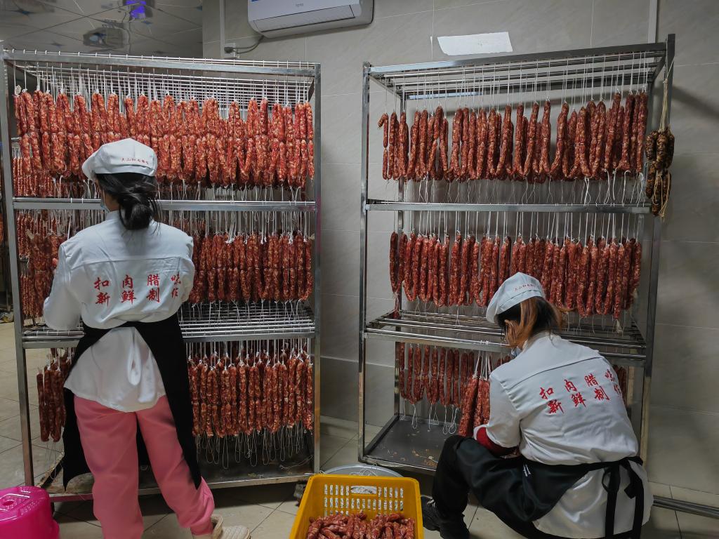 做好土特產(chǎn)文章,發(fā)展特色產(chǎn)業(yè)是實(shí)現(xiàn)鄉(xiāng)村振興的一條重要途徑。在陸川縣,當(dāng)?shù)貒@國(guó)家地理標(biāo)志產(chǎn)品陸川豬不斷助推村民致富增收。切割、生產(chǎn)、烘干、包裝……在位于陸川縣珊羅鎮(zhèn)大山村的玉林市浚淇食品有限公司,工人們正忙著生產(chǎn)和包裝臘腸?!澳觋P(guān)將至,臘肉、臘腸、扣肉的生產(chǎn)也迎來旺季?!惫矩?fù)責(zé)人梁滬芳說。