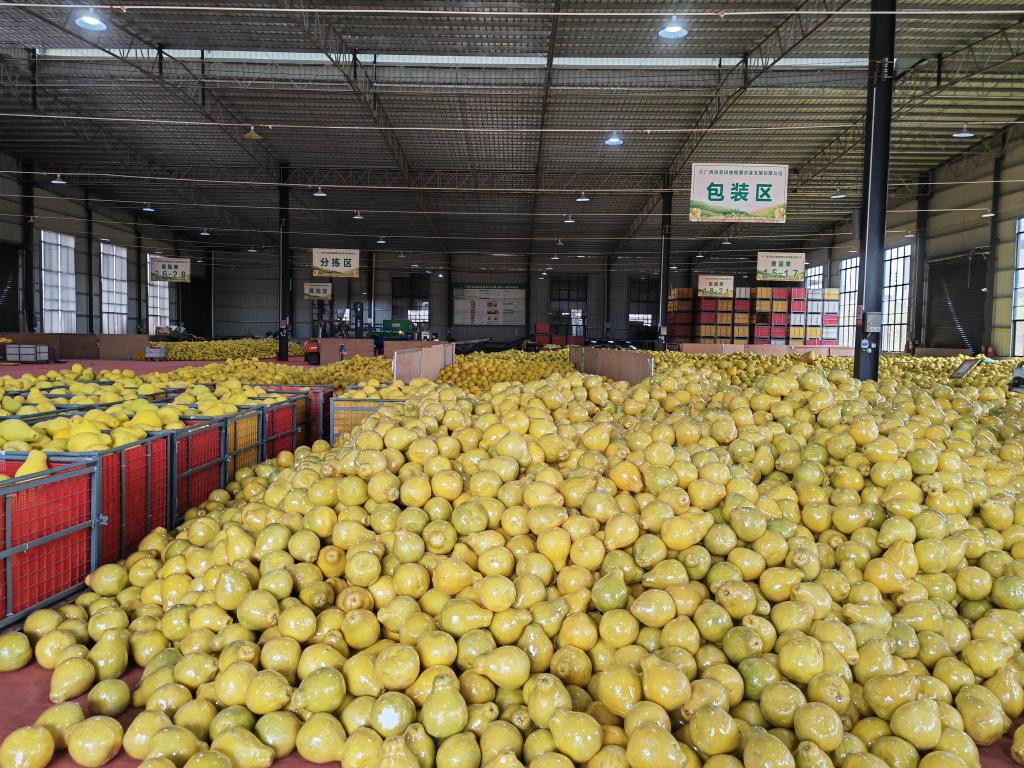 記者在廣西容縣萬畝沙田柚種植有限公司的種植基地看到,上千畝沙田柚果樹生長(zhǎng)正旺。在倉(cāng)儲(chǔ)物流車間,摘下來的沙田柚經(jīng)過自動(dòng)化清洗、篩選,最后由工作人員裝箱打包,郵寄到全國(guó)各地?!拔覀兘衲晟程镨之a(chǎn)量有400多萬斤,價(jià)格不錯(cuò),我們通過線上、線下的模式進(jìn)行銷售,如今賣了300多萬斤?!惫矩?fù)責(zé)人彭遠(yuǎn)說,基地每天需要400人做工,優(yōu)先雇傭本地村民,持續(xù)發(fā)揮聯(lián)農(nóng)帶農(nóng)作用。