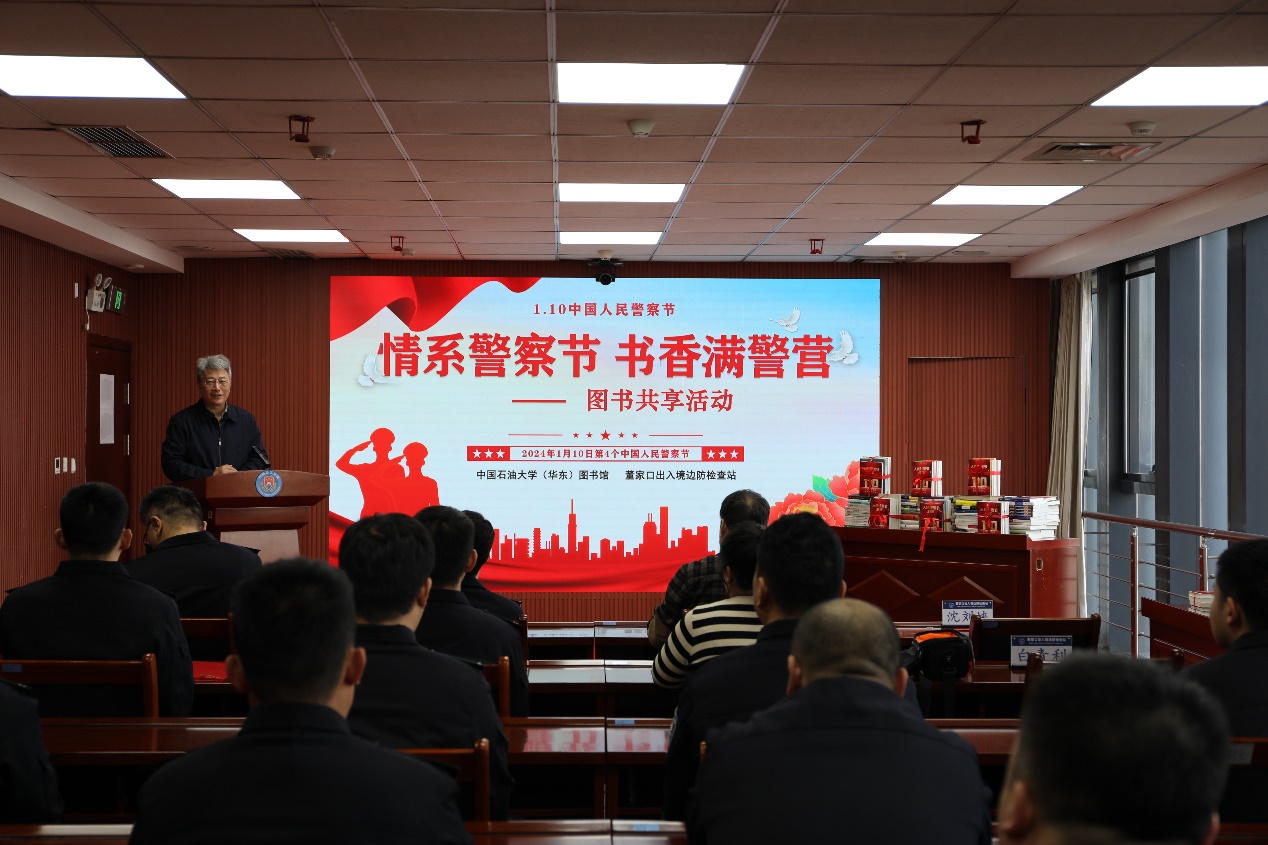 1月8日,山東出入境邊防檢查總站董家口邊檢站與中國石油大學(xué)(華東)圖書館開展“情系警察節(jié) 書香滿警營”圖書共享活動,慶祝第四個中國人民警察節(jié),鼓勵民警發(fā)現(xiàn)讀書的樂趣,培養(yǎng)讀書的習(xí)慣,推動“書香警營”建設(shè)。