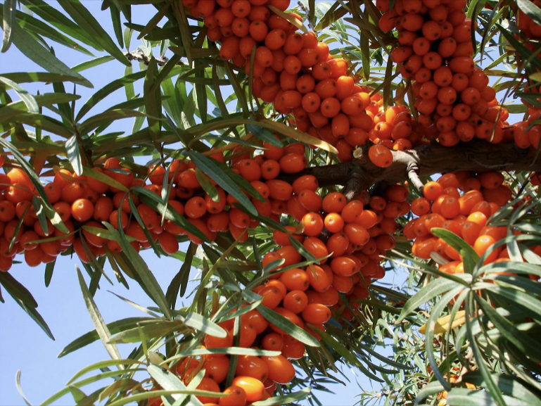 在最貧瘠的土地上生長出茂盛的枝葉和營養(yǎng)豐富的果實(shí),是沙棘這種植物的真實(shí)寫照?!皩L簟丙}堿、荒漠等條件惡劣的土地扎根,形成“地上一把傘,地面一層氈,地下一張網(wǎng)”,防止水土流失,保護(hù)生態(tài)環(huán)境;同時(shí)沙棘“渾身是寶”,澤福一方百姓,帶動(dòng)一地經(jīng)濟(jì);更憑借藥食同源的特性,營養(yǎng)大眾,為消費(fèi)者帶來有益身體健康的沙棘產(chǎn)品。