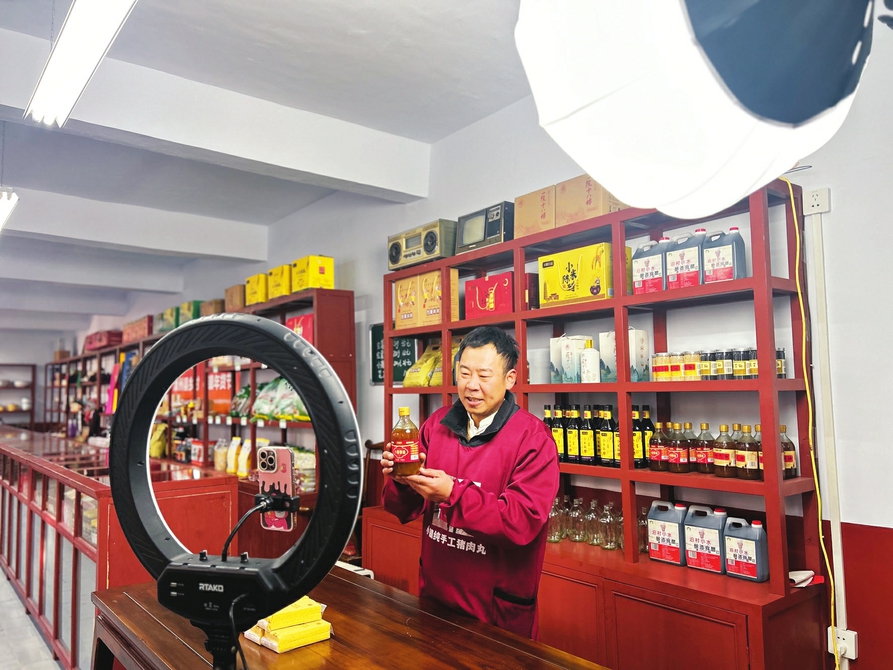 宋小朋在保福村供銷(xiāo)社里直播推介當(dāng)?shù)剞r(nóng)產(chǎn)品 晉睿 攝