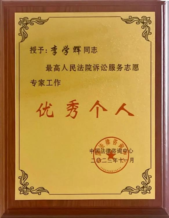 李學(xué)輝律師獲評(píng)“最高人民法院訴訟服務(wù)志愿專家工作優(yōu)秀個(gè)人”