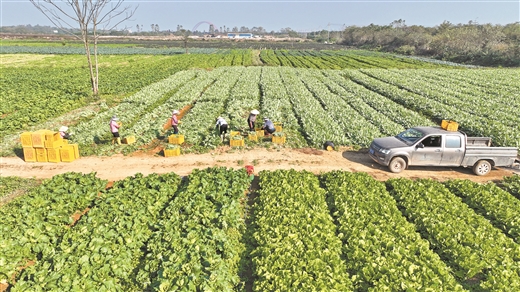 3月22日,位于廣西壯族自治區(qū)貴港市平南縣東華鎮(zhèn)東平社區(qū)西村的蔬菜種植基地里,強(qiáng)干種養(yǎng)專業(yè)合作社負(fù)責(zé)人傅華干正組織村民收菜:“這塊田之前種了水稻,秋收后我們又種植了芥菜、大白菜、菜心等蔬菜共180畝,讓土地得到最大化利用,增加經(jīng)濟(jì)效益,目前蔬菜收入大概5萬(wàn)元。”