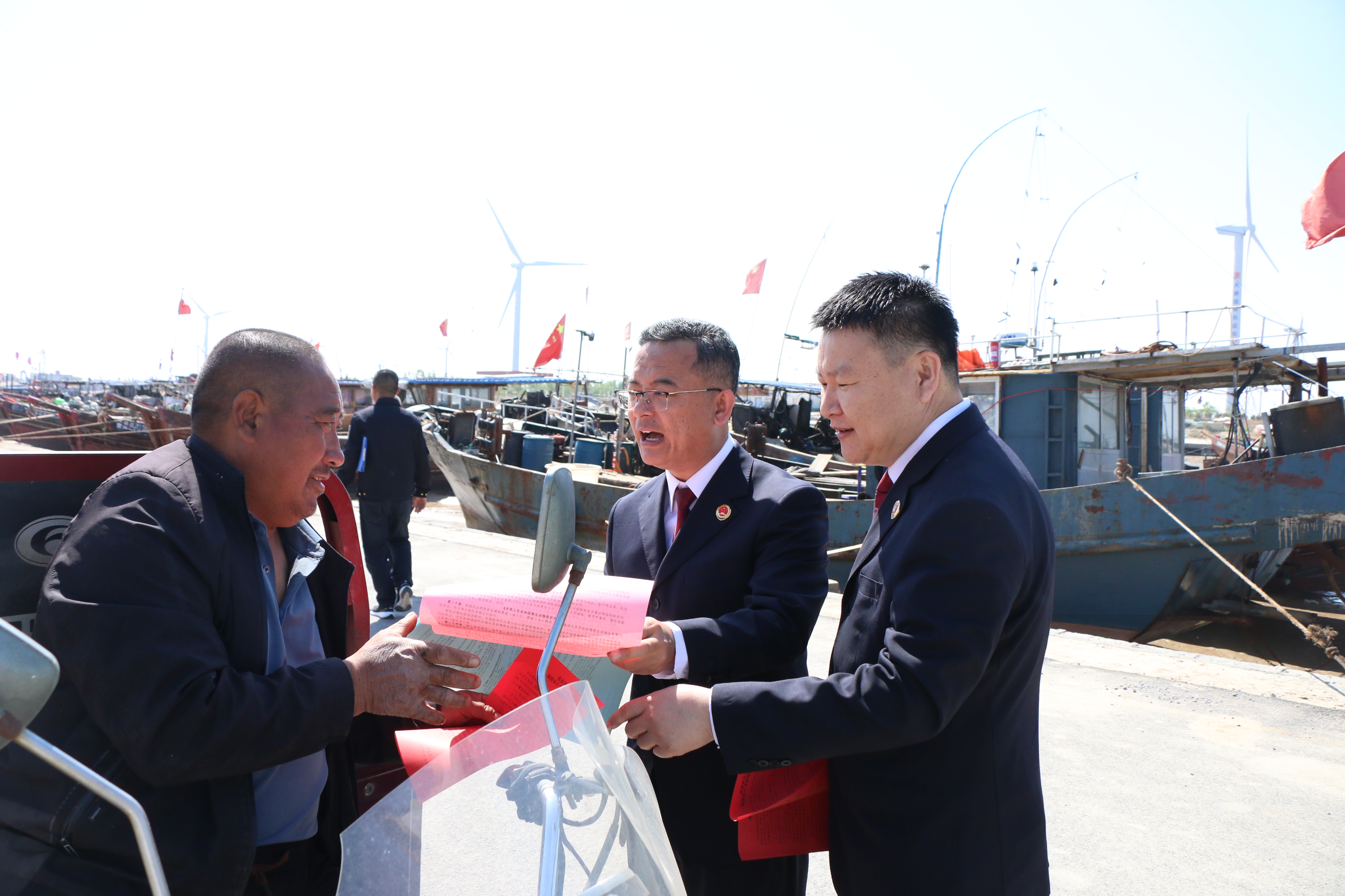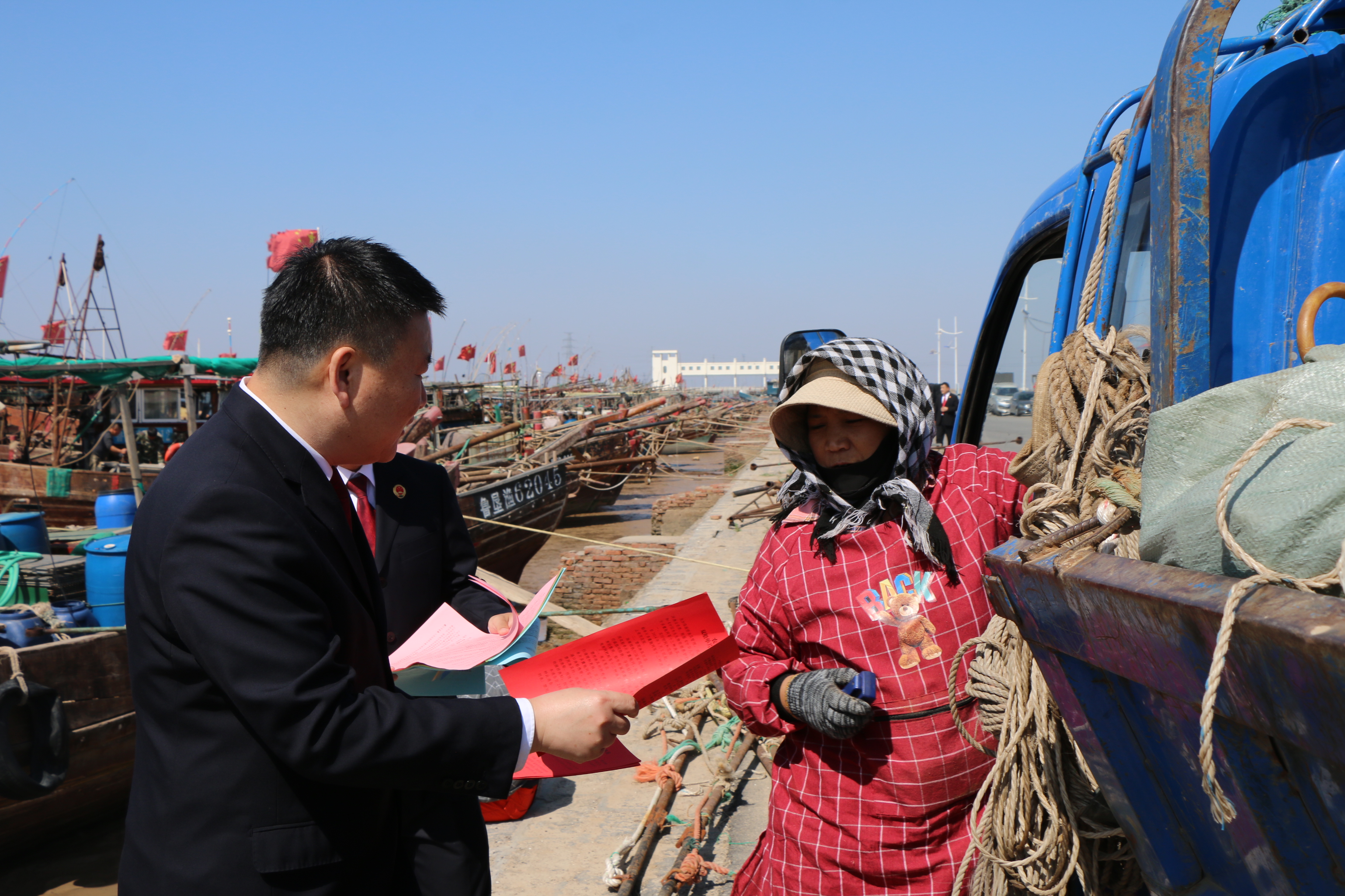 2024年5月1日12時,山東省東營市的海洋伏季休漁期正式開始,為有效保護(hù)黃河入??跐O業(yè)資源和生態(tài)環(huán)境,不斷增強(qiáng)群眾自覺遵守伏季休漁期法律法規(guī)意識,墾利區(qū)人民檢察院聯(lián)合區(qū)人民法院、區(qū)海洋發(fā)展和漁業(yè)局、東營海警局墾利工作站等部門到轄區(qū)紅光漁港開展了伏季休漁期法治宣傳活動。