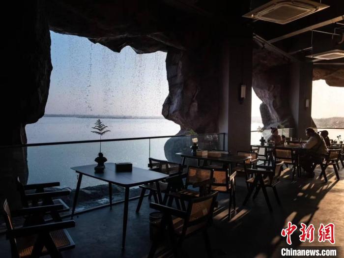 一杯咖啡配一簾水幕瀑布,瀑布咖啡廳位于洞穴內(nèi),坐在室內(nèi)向外望,氣勢磅礴的瀑布景觀和開闊的江面美景一覽無余;搭配別致淡雅的裝修風(fēng)格,透露著輕松愜意的氣氛。