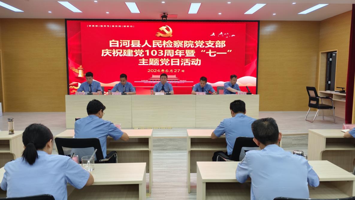 6月27日,陜西省安康市白河縣人民檢察院開展慶祝建黨103周年暨“七一”主題黨日活動(dòng),活動(dòng)由該院黨組成員、政治部主任樂明剛主持,全體黨員干警參加。