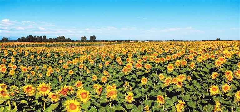 飲馬農(nóng)場(chǎng)盛開的油葵 通訊員 完代可