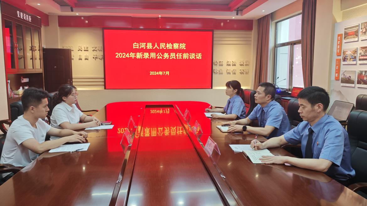 為使新進(jìn)干警盡快轉(zhuǎn)變角色,適應(yīng)新環(huán)境,增強(qiáng)檢察履職使命感和責(zé)任感,7月16日,陜西省安康市白河縣人民檢察院召開2024年新入職公務(wù)員任前談話會,2名新錄用人員從檢之路就此啟航。