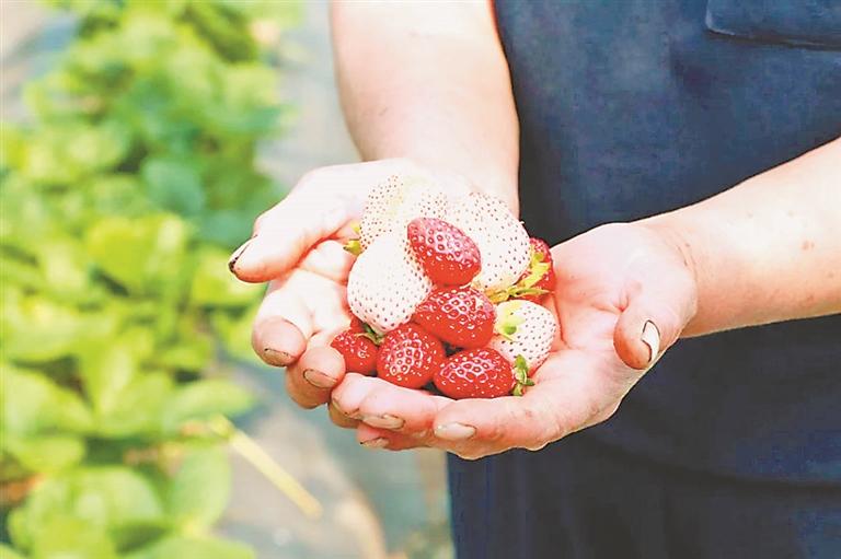 “看這白里透粉的草莓,味道就是剛剛好?!睎|山村村民王淑玲熱情地給大家介紹怎么找熟草莓,“今年的白草莓比蜂蜜都甜,我家種了兩個(gè)大棚,供不應(yīng)求,明年還得擴(kuò)大規(guī)模。”