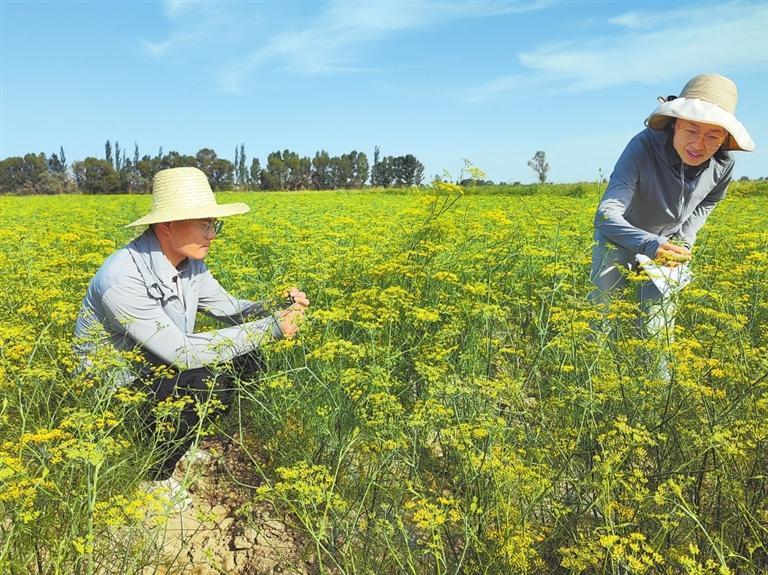 “種茴香省工省力,耗水少,市場價格相對穩(wěn)定,在每斤5元以上,效益比較可觀。今年我們種植了鐵桿茴香,通過施入生物菌肥‘保根120’,茴香表現(xiàn)出了優(yōu)異的抗重茬、防根腐等效果,預計產量不錯。”黃花農場產業(yè)發(fā)展部副部長張月娥介紹,她一邊觀察茴香長勢,一邊測定土壤墑情。