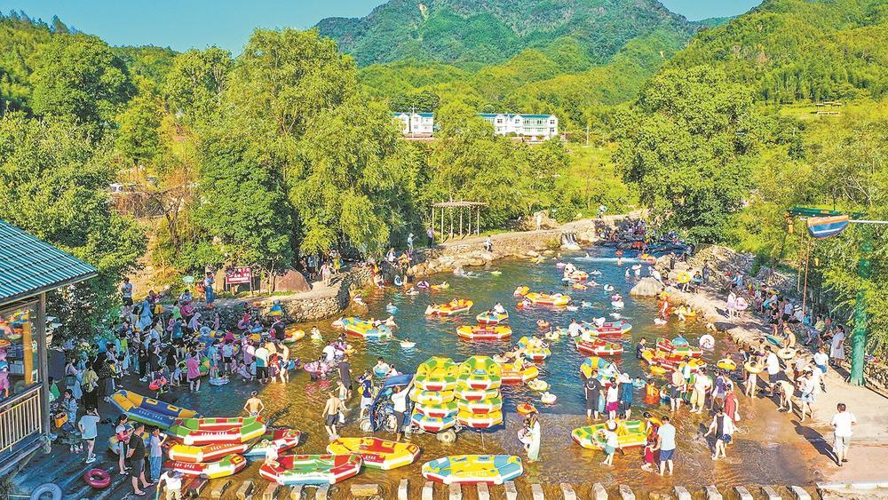 高峰村的漂流項(xiàng)目吸引眾多游客前來體驗(yàn)