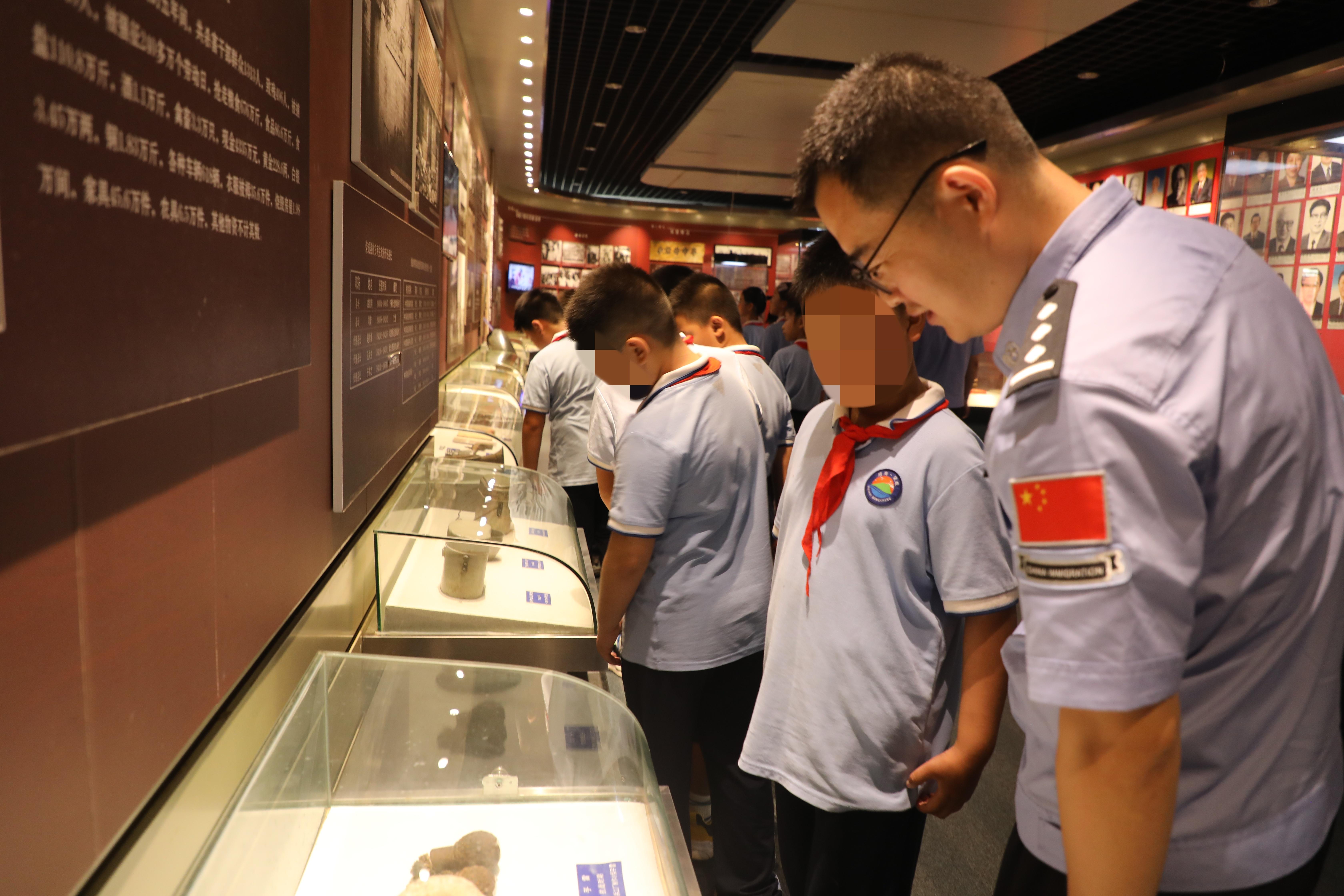活動中,該站民警攜手駐地小學(xué)學(xué)生一起走進榮成市博物館“世紀(jì)榮成”展館,共同了解榮成從古至今的發(fā)展歷程,傳承紅色基因,弘揚愛國精神。整個展館共展出700多張珍貴照片、300多件珍貴文物資料,展示了榮成自辛亥革命以來百年社會進程、典型人物及榮成兒女取得的輝煌成就。通過一幅幅的歷史照片和抗戰(zhàn)時期歷史實物,生動再現(xiàn)了抗戰(zhàn)時期,無數(shù)英勇無畏的中華兒女,為了民族獨立和人民解放,浴血奮戰(zhàn)、前赴后繼的壯烈事跡。跟隨著解說員的講解,大家仿佛被帶入到那段艱苦卓絕、血雨腥風(fēng)的抗戰(zhàn)歲月,看到了戰(zhàn)爭背后鮮為人知的感人故事,心靈受到了洗禮,思想也得到了升華。