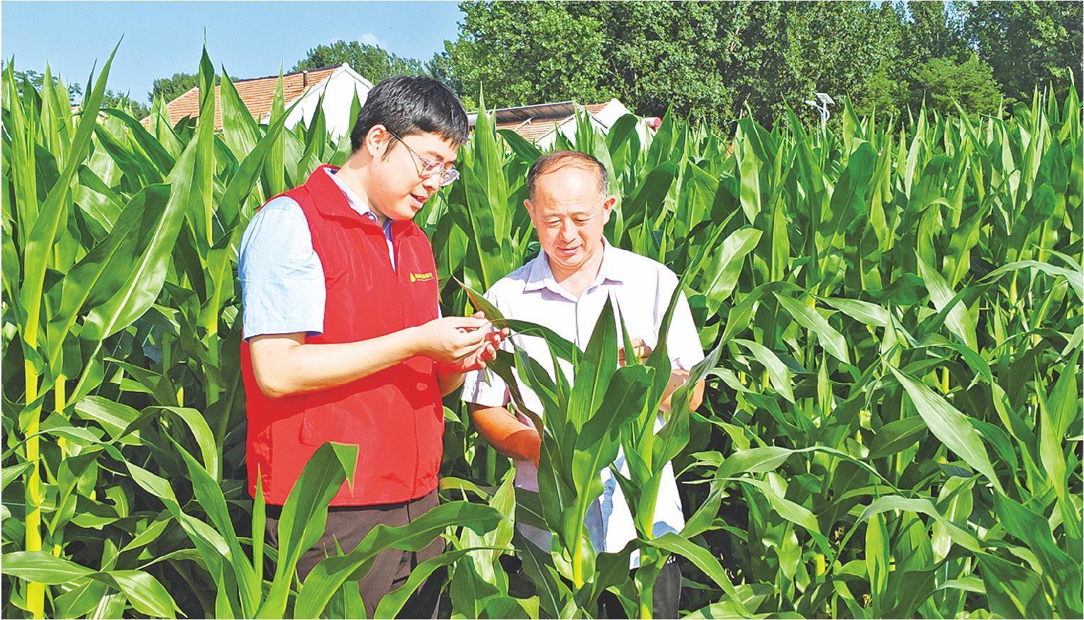 農(nóng)商銀行工作人員到田間地頭了解作物生長(zhǎng)狀況