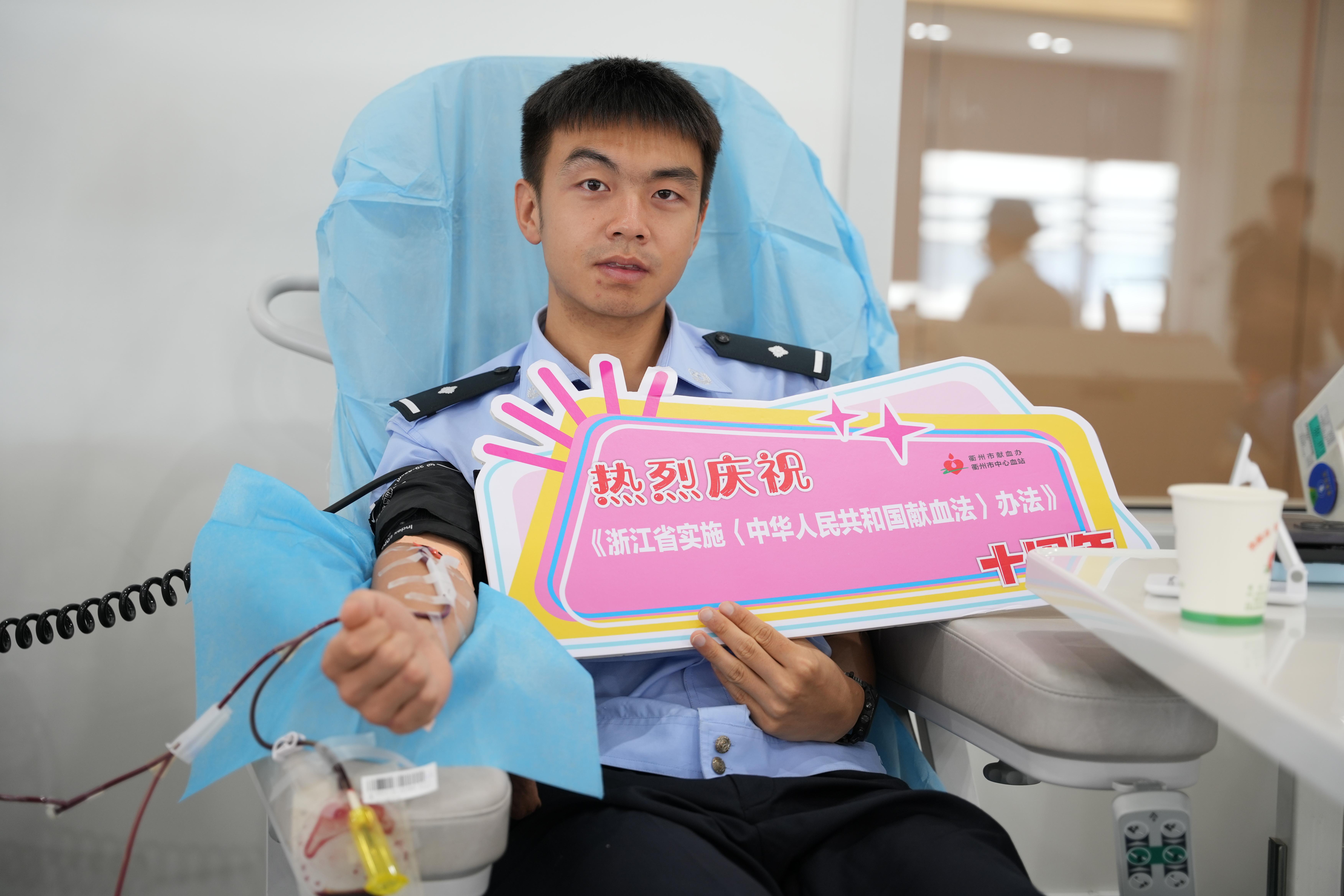 如今,徐垠飛已成為衢州市中心血站的“救火隊長”,每當(dāng)血庫告急,工作人員總會第一時間想到他。無論刮風(fēng)下雨,他總能及時出現(xiàn)在血站,血站里的護士也被他的行為所感動,徐垠飛笑著說,“作為一名黨員,參加無償獻血我隨叫隨到”。