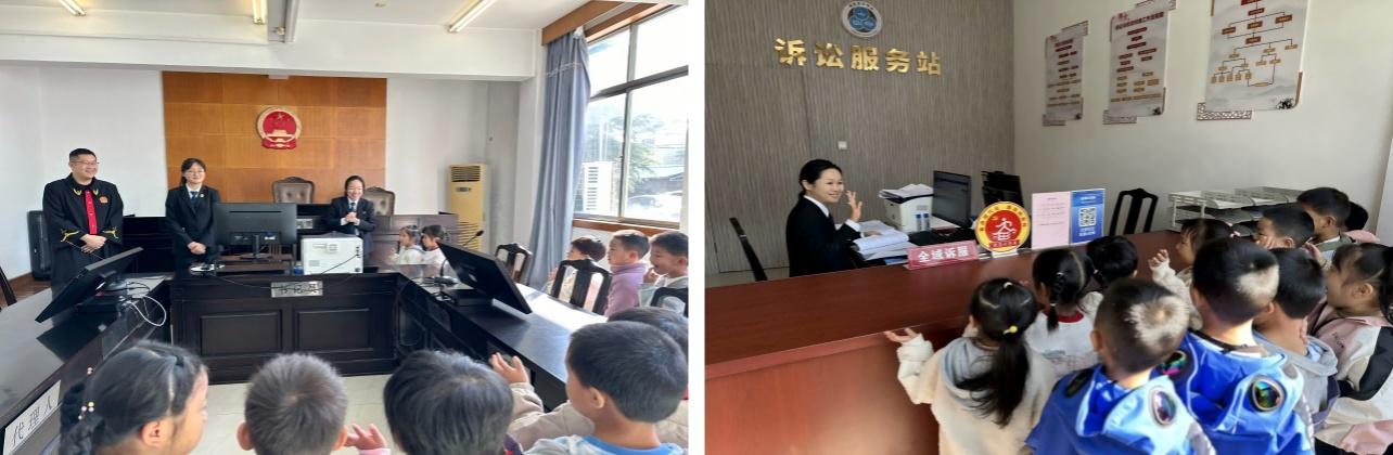 一進入法庭,孩子們便被那莊嚴肅穆的氛圍深深感染。他們滿懷著好奇,仔細觀察著周圍的一切,心中對法治的敬畏與向往油然而生。在工作人員的精心安排下,小朋友們依次參觀了調(diào)解室、庭審室,初步了解了法庭的職責(zé)以及相關(guān)法律常識。孩子們聽得全神貫注,不時提出各種問題,與工作人員積極互動交流。
