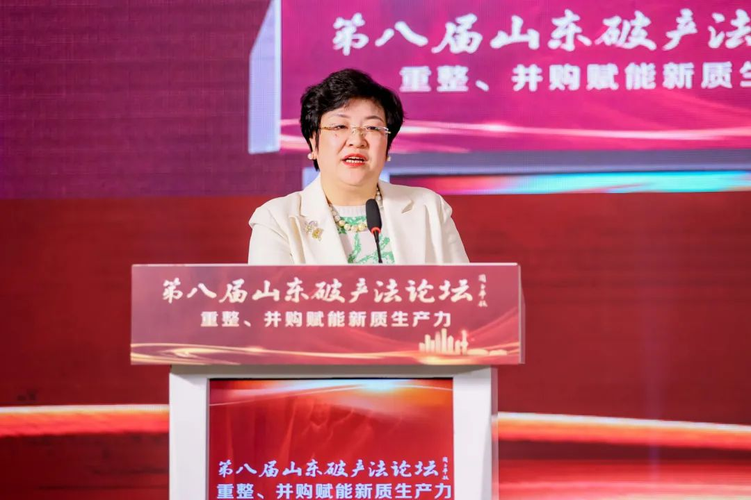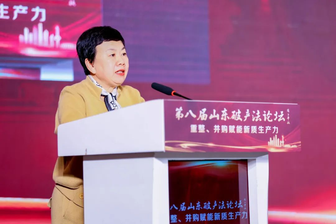 2024年11月10日,第八屆山東破產(chǎn)法論壇在濟(jì)南成功舉辦。本屆論壇由全聯(lián)并購公會(huì)、山東金融業(yè)聯(lián)合會(huì)、山東省不良資產(chǎn)處置協(xié)會(huì)、山東大學(xué)交叉法學(xué)研究院、浙江工商大學(xué)破產(chǎn)重組研究院、山東省法學(xué)會(huì)企業(yè)破產(chǎn)與重組研究會(huì)聯(lián)合主辦。本屆論壇緊緊圍繞“新質(zhì)生產(chǎn)力”的深刻內(nèi)涵,聚焦“重整并購賦能新質(zhì)生產(chǎn)力”這一核心主題展開研討。山東法學(xué)會(huì)企業(yè)破產(chǎn)與重組研究會(huì)名譽(yù)會(huì)長、山東省高級(jí)人民法院原院長周玉華;全國工商聯(lián)第十三屆常委、全聯(lián)并購公會(huì)會(huì)長尉立東;山東金融業(yè)聯(lián)合會(huì)秘書長何修崟;山東省不良資產(chǎn)處置協(xié)會(huì)會(huì)長李薇華;中國法學(xué)會(huì)世界貿(mào)易組織法研究會(huì)副會(huì)長兼秘書長、中國人民大學(xué)特聘教授石靜霞;華東政法大學(xué)國際金融法律學(xué)院教授、浙江省高級(jí)人民法院原民二庭庭長章恒筑出席開幕式。山東省法學(xué)會(huì)企業(yè)破產(chǎn)與重組研究會(huì)會(huì)長劉平主持開幕式。全國工商聯(lián)第十三屆常委、全聯(lián)并購公會(huì)會(huì)長尉立東,山東省不良資產(chǎn)處置協(xié)會(huì)會(huì)長李薇華在開幕式上致辭演講。6位主旨演講嘉賓、28位主題演講嘉賓圍繞各主題、議題,展開了為期一天的深入研討。全聯(lián)并購公會(huì)副會(huì)長、山東省法學(xué)會(huì)企業(yè)破產(chǎn)與重組研究會(huì)副會(huì)長兼秘書長、山東華信清算重組集團(tuán)有限公司董事長提瑞婷作閉幕致辭。