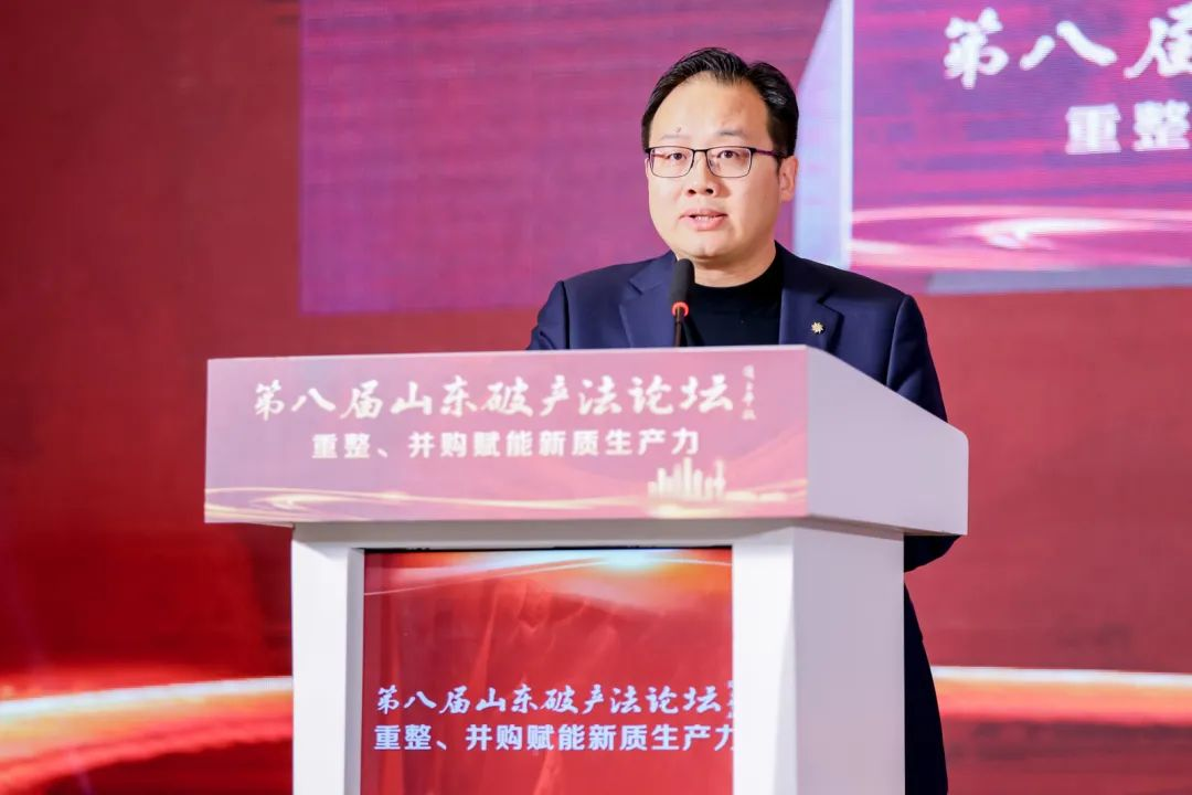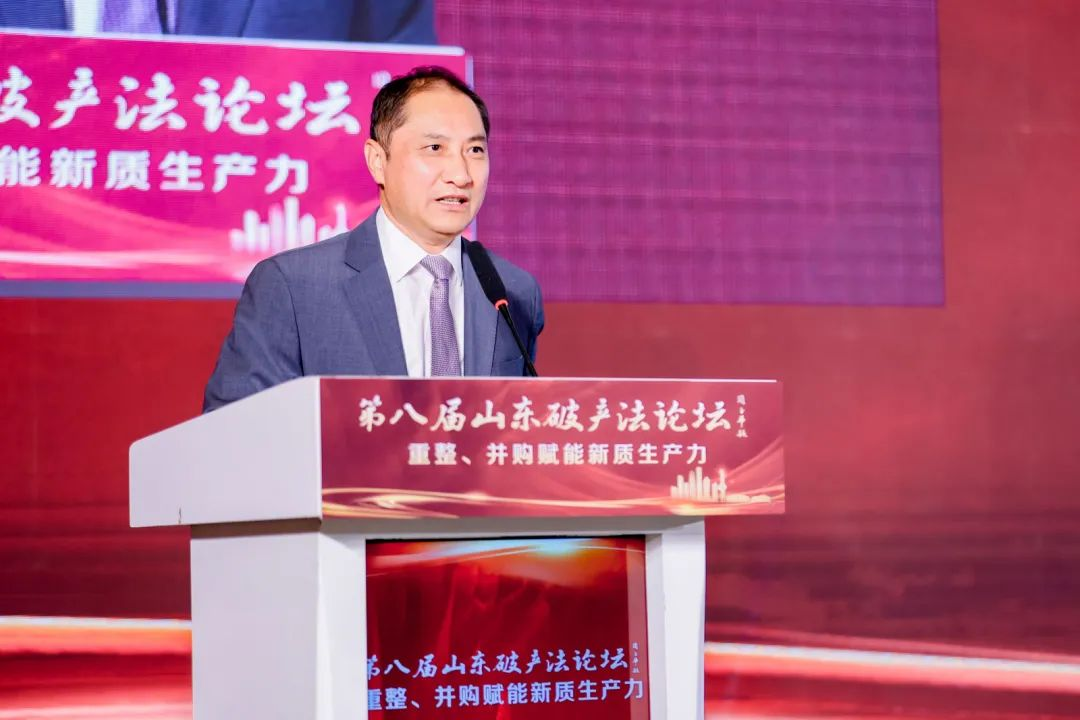 山東省不良資產(chǎn)處置協(xié)會(huì)李薇華會(huì)長在開幕致辭中對(duì)論壇的舉辦致以熱烈的祝賀。李薇華會(huì)長表示,黨的二十屆三中全會(huì)公報(bào)指出,高水平社會(huì)主義市場經(jīng)濟(jì)體制是中國式現(xiàn)代化的重要保障,要健全因地制宜發(fā)展新質(zhì)生產(chǎn)力的體制機(jī)制,發(fā)揮新質(zhì)生產(chǎn)力促進(jìn)技術(shù)革命性突破、生產(chǎn)要素創(chuàng)新配置以及產(chǎn)業(yè)深度的轉(zhuǎn)型升級(jí)的重要作用。除發(fā)現(xiàn)新質(zhì)生產(chǎn)力發(fā)展中的獨(dú)特價(jià)值之外,我們還應(yīng)對(duì)破產(chǎn)法在司法權(quán)運(yùn)行機(jī)制、金融機(jī)構(gòu)風(fēng)險(xiǎn)處置、國企并購擔(dān)當(dāng)?shù)确矫孢M(jìn)行前沿探索與深入實(shí)踐。破產(chǎn)法的實(shí)施,離不開社會(huì)各界的交流與合作、共同努力,法院、協(xié)會(huì)、企業(yè)、院校、投融資機(jī)構(gòu)及從業(yè)者要共同攜手、形成合力,推動(dòng)破產(chǎn)法制度的完善與實(shí)施。