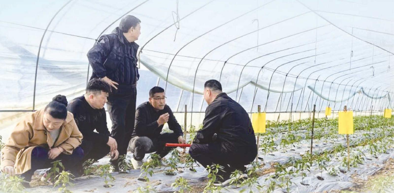 在淮南市謝家集區(qū)李郢孜鎮(zhèn),科技特派員在指導(dǎo)椒農(nóng)進行田間生產(chǎn)管理