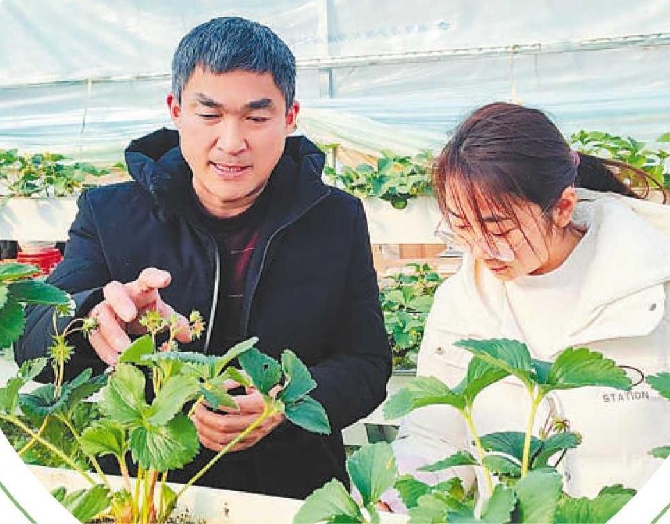 在淮南市八公山區(qū)山王鎮(zhèn),科技特派員正在指導(dǎo)草莓種植管理