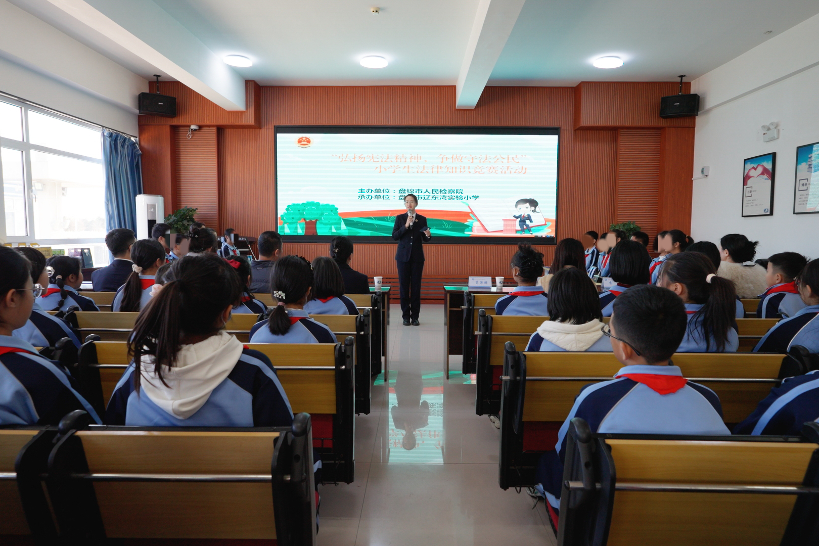 為弘揚憲法精神,進一步提升未成年人普法質效,推動檢察官擔任法治副校長“實職化”履職,在第11個憲法日來臨之際,盤錦市人民檢察院的未檢干警們走進遼東灣實驗小學,與學校聯(lián)合開展了小學生法律知識競賽活動。競賽共有“表情猜詞”“動動腦筋來擴句”和“知識競答”三個環(huán)節(jié),形式豐富多彩,內容涵蓋了《中華人民共和國憲法》《中華人民共和國未成年人保護法》《中華人民共和國預防未成年人犯罪法》《中華人民共和國刑法》《中華人民共和國民法典》等多方面與孩子們的生活學習息息相關的法律知識。賽前檢察干警還對參賽選手們進行了專業(yè)輔導。