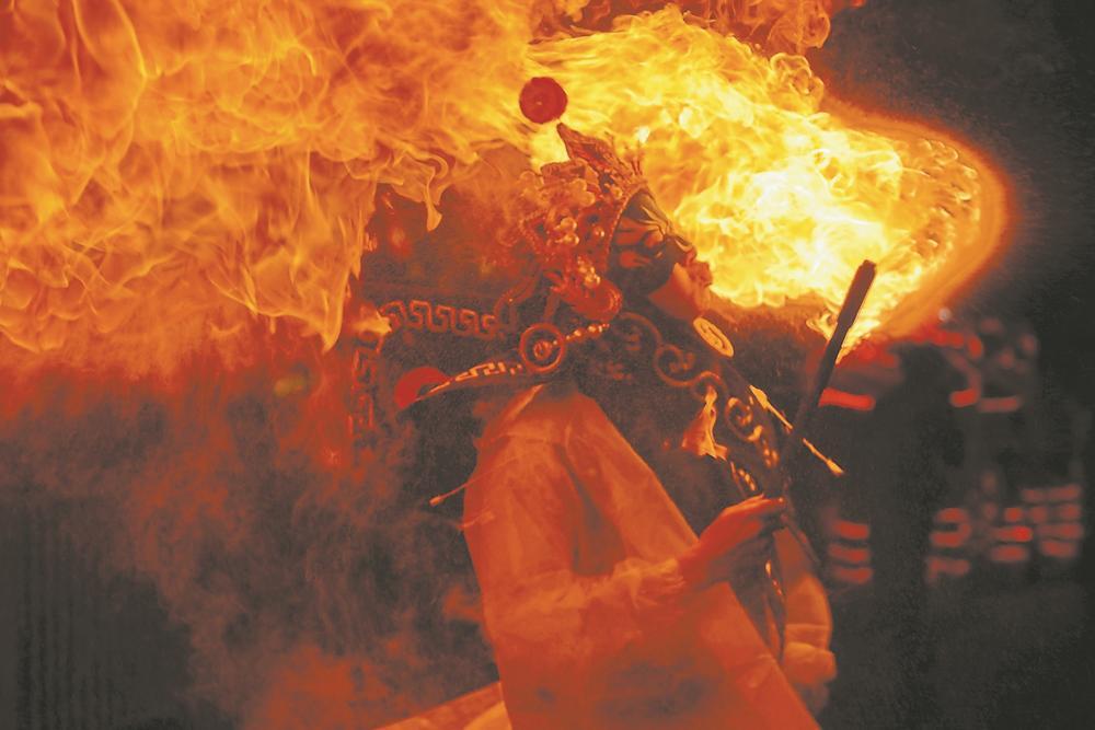 連城非遺奇妙夜的變臉吞火表演(連城縣融媒體中心供圖)