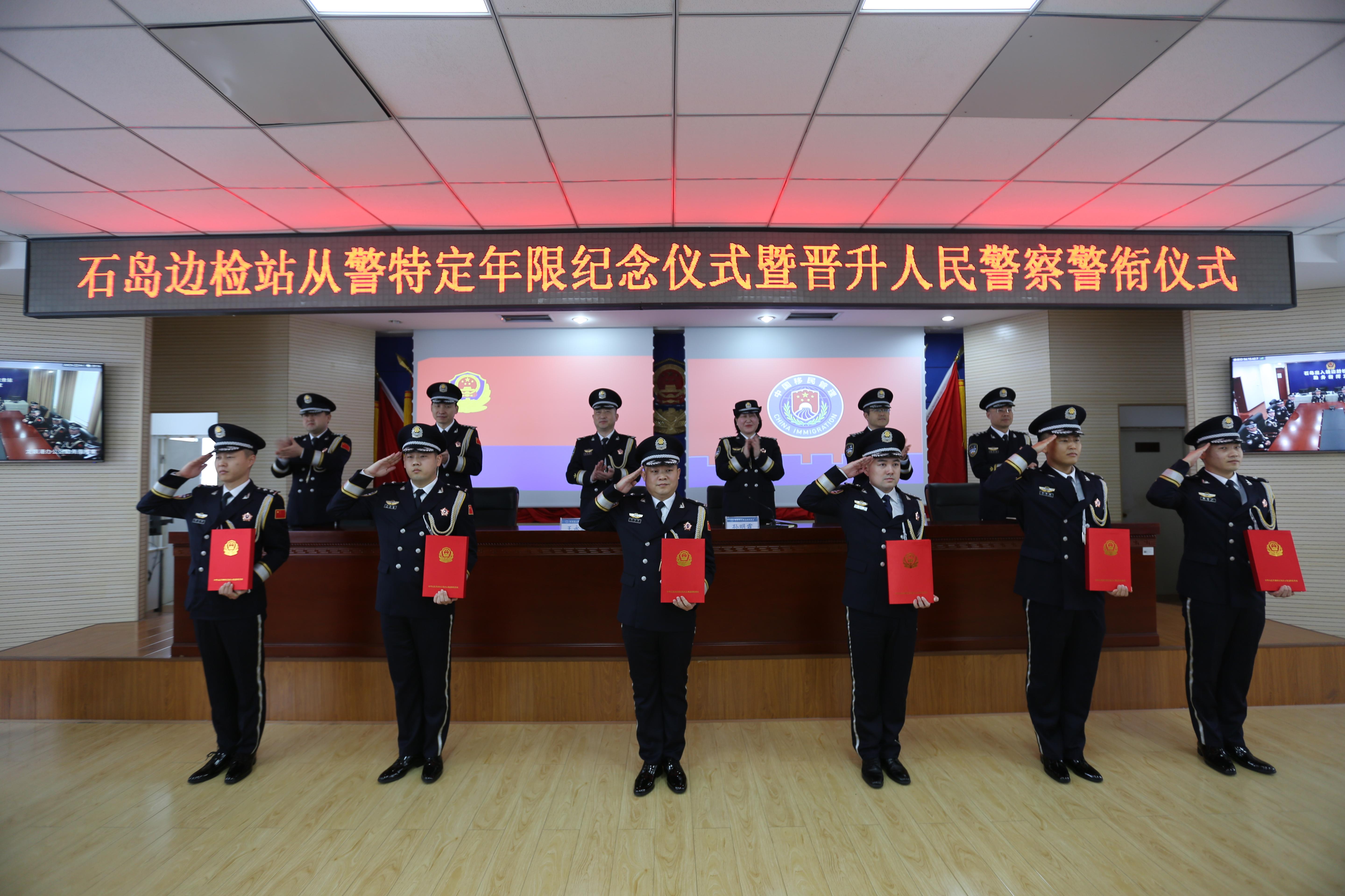 為熱烈慶祝第五個中國人民警察節(jié),進(jìn)一步激發(fā)隊伍凝聚力戰(zhàn)斗力、提高民警榮譽(yù)感歸屬感,1月9日,山東省榮成市石島出入境邊防檢查站舉辦從警特定年限紀(jì)念儀式暨晉升人民警察警銜儀式。