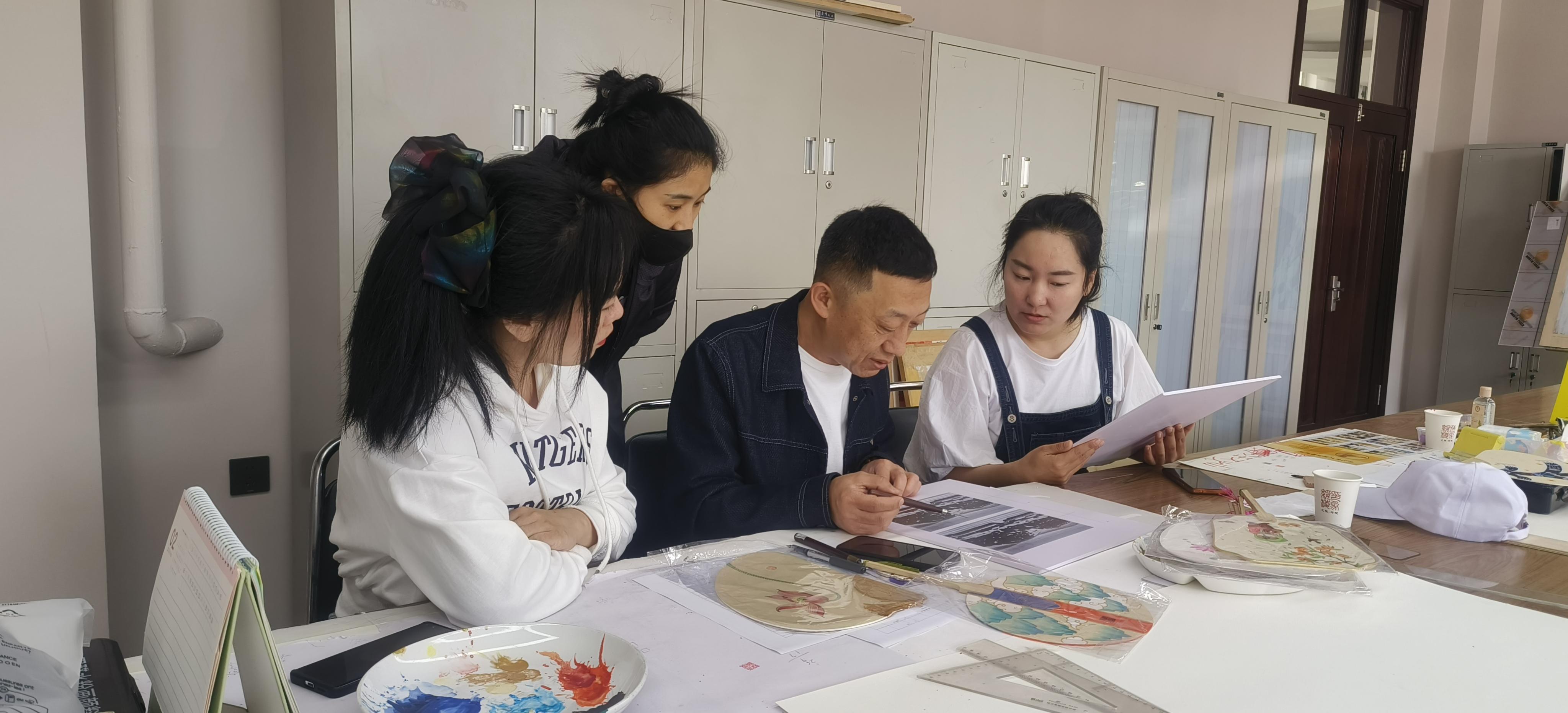 農(nóng)民畫傳承人在討論農(nóng)民畫創(chuàng)作(綏棱縣文體廣電和旅游局供圖)