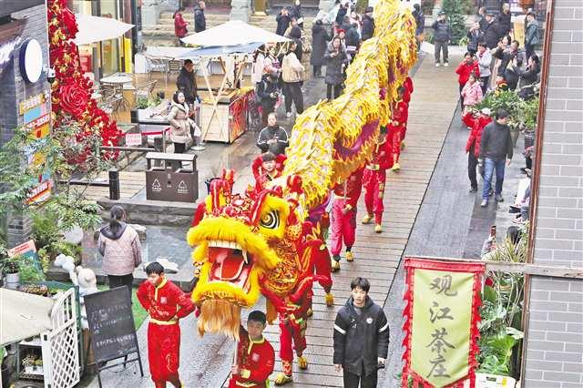 重慶高新區(qū)走馬古鎮(zhèn)用非遺點(diǎn)燃游客的熱情:春節(jié)期間,舞龍隊(duì)、舞獅隊(duì)、花船、腰鼓隊(duì)等在古鎮(zhèn)里巡游;當(dāng)?shù)卮迕褡跃幾匝莸纳徍嵨琛Ⅳ~(yú)燈舞等吸引了十里八鄉(xiāng)的村民前來(lái)打卡。