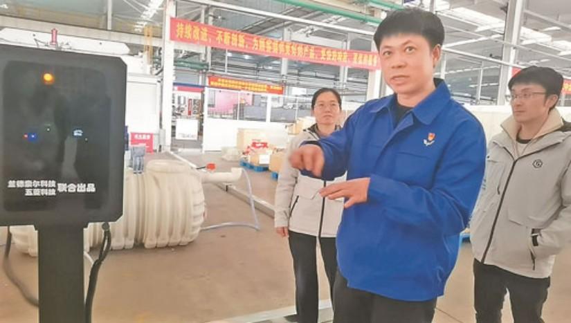國(guó)家級(jí)技能大師鄭志明介紹“五菱科技3.0版”農(nóng)村污水治理智能機(jī)研制進(jìn)展情況