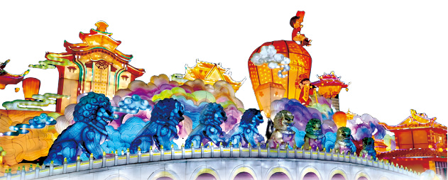 明月映盧溝,層云現(xiàn)宮闕。乙巳年正月十一(2月8日),步入2025年京彩新春彩燈嘉年華(以下簡(jiǎn)稱“京彩燈會(huì)”),又行一刻,便見(jiàn)《天宮祈愿》。那用彩燈構(gòu)筑的盧溝橋通向仙山,數(shù)只石獅威嚴(yán)肅穆,鎮(zhèn)守這條神秘通道。遠(yuǎn)處仙山可居住著抗日英靈?想來(lái)觀此盛世,他們亦會(huì)感到欣慰。
