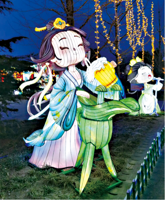 筆者在《福祿壽喜——金榜題名》附近休息時(shí),忽聽(tīng)到一家長(zhǎng)問(wèn)道,“看這幾個(gè)字——金榜題名,你知道什么含義嗎”?孩子答,“就是成績(jī)考得好”。家長(zhǎng)從科舉制度講起:金榜是殿試之后揭曉進(jìn)士名字的榜單,因用黃紙墨書(shū)故稱“金榜”……見(jiàn)此家長(zhǎng)聚精會(huì)神地翻閱手機(jī),應(yīng)是特意搜索了相關(guān)歷史故事。普及歷史后,孩子站在彩燈前,家長(zhǎng)拍照寄語(yǔ)孩子祝福與期望。之后陸續(xù)有數(shù)十個(gè)家庭前來(lái)打卡拍照,多是在彩燈前詢問(wèn)孩子未來(lái)展望,亦有家長(zhǎng)講解歷史,還有家長(zhǎng)現(xiàn)場(chǎng)布置作業(yè),要求孩子逛完京彩燈會(huì)后回家寫(xiě)寒假作文。想來(lái)孩子們?cè)谧魑闹校瑫?huì)寫(xiě)下與父母游園的點(diǎn)點(diǎn)滴滴,在未來(lái)也會(huì)成一段難忘的回憶。