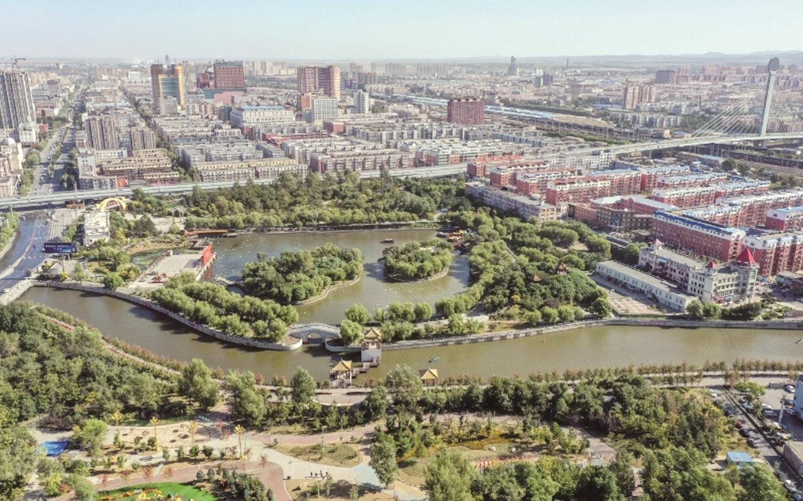 空中俯瞰,遼河宛如一條蜿蜒絲帶穿梭于城市之間,盡顯城市與自然和諧交融之景。