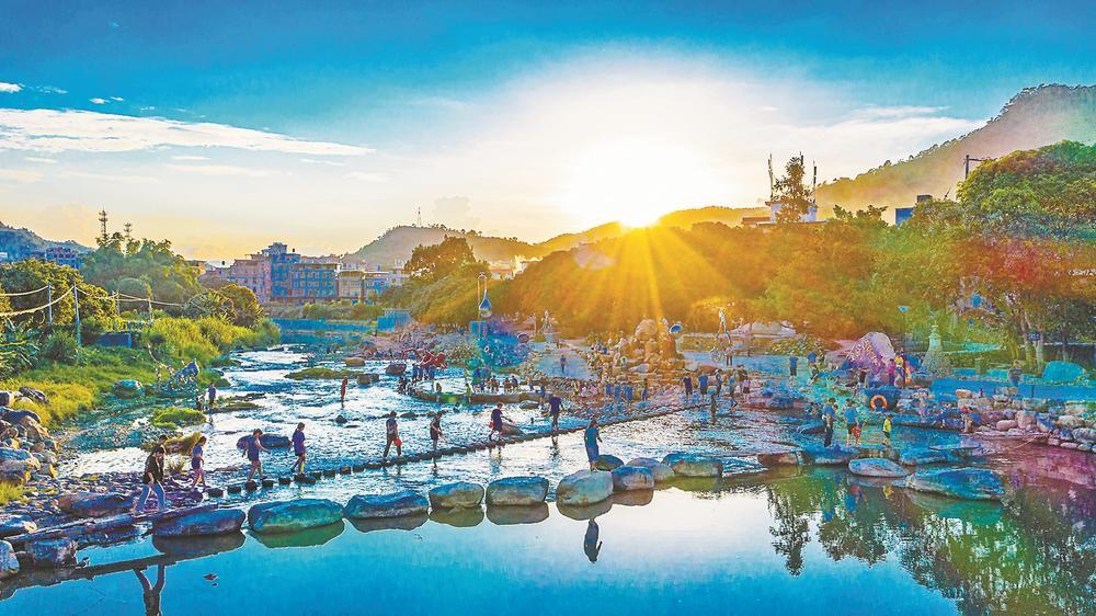 游客在金谷溪岸文藝村享受快樂的休閑時光(資料圖片)