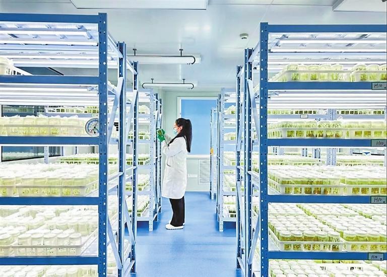甘肅農(nóng)墾亞盛農(nóng)業(yè)研究院工作人員在查看試管苗生長(zhǎng)情況