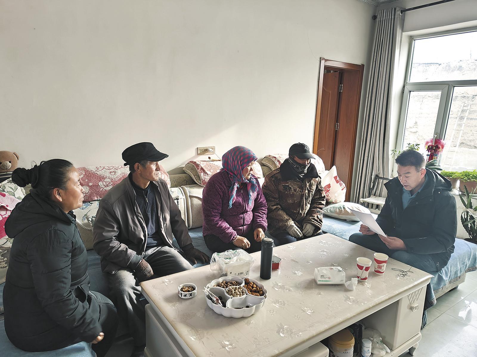 在寫到“國家糧食安全根基更加穩(wěn)固,農(nóng)業(yè)綜合生產(chǎn)能力穩(wěn)步提升”時(shí),李生泉轉(zhuǎn)過頭對(duì)圍觀的村民說“大家的地一定不能撂荒,要好好種,剛才已經(jīng)跟大家講過了,現(xiàn)在種糧有補(bǔ)貼,買農(nóng)機(jī)農(nóng)具也有補(bǔ)貼。最主要的是中央一號(hào)文件說‘進(jìn)一步擴(kuò)大糧食單產(chǎn)提升工程實(shí)施規(guī)模,加大高產(chǎn)高效模式集成推廣力度,推進(jìn)水肥一體化,促進(jìn)大面積增產(chǎn)。加力落實(shí)新一輪千億斤糧食產(chǎn)能提升任務(wù)?!@些釋放了國家持續(xù)增強(qiáng)糧食等重要農(nóng)產(chǎn)品供給保障能力這一強(qiáng)烈信號(hào)……”