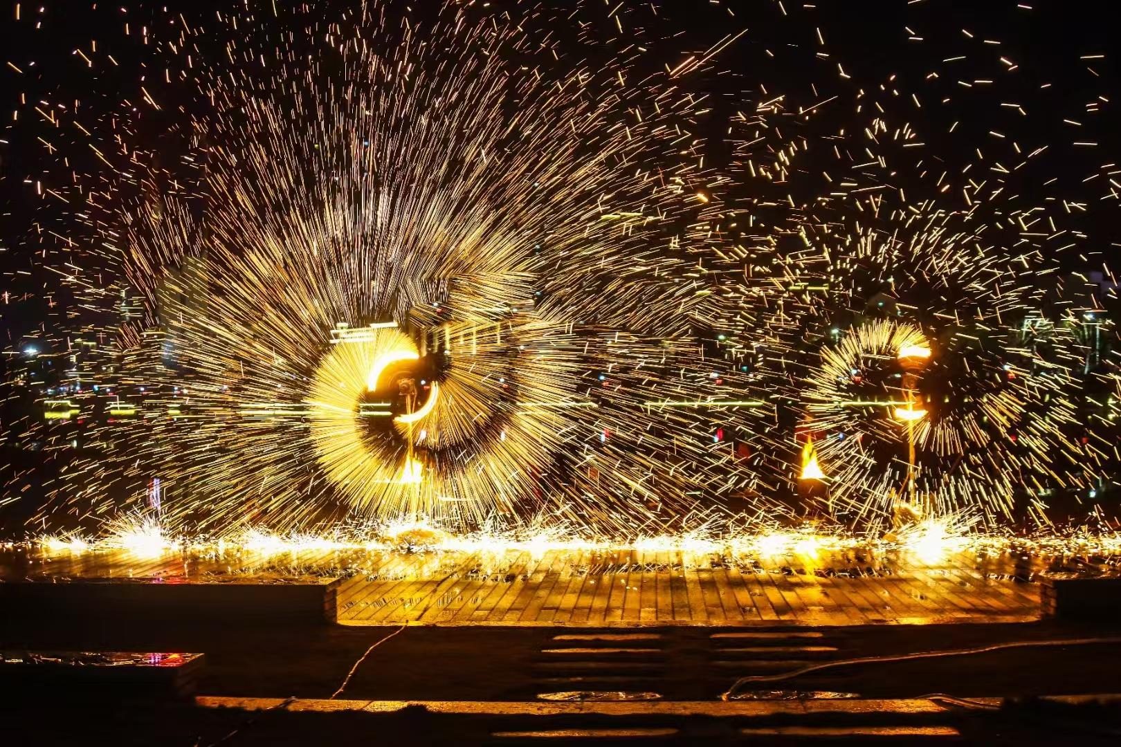 今年春節(jié)期間,以“蛇舞新春·函谷祈?!睘橹黝},河南靈寶的函谷關(guān)大廟會每天推出120場演出?!洞笄胤樵啤贰蹲蠚鈻|來》《秦王點(diǎn)將》《函谷迎賓》《楚漢爭關(guān)》等傳統(tǒng)節(jié)目復(fù)演升級,馬上奔跑抖火壺節(jié)目驚艷亮相,融合打鐵花、水幕燈光秀、威亞火壺表演的水上演藝項(xiàng)目《函谷盛境》推出。