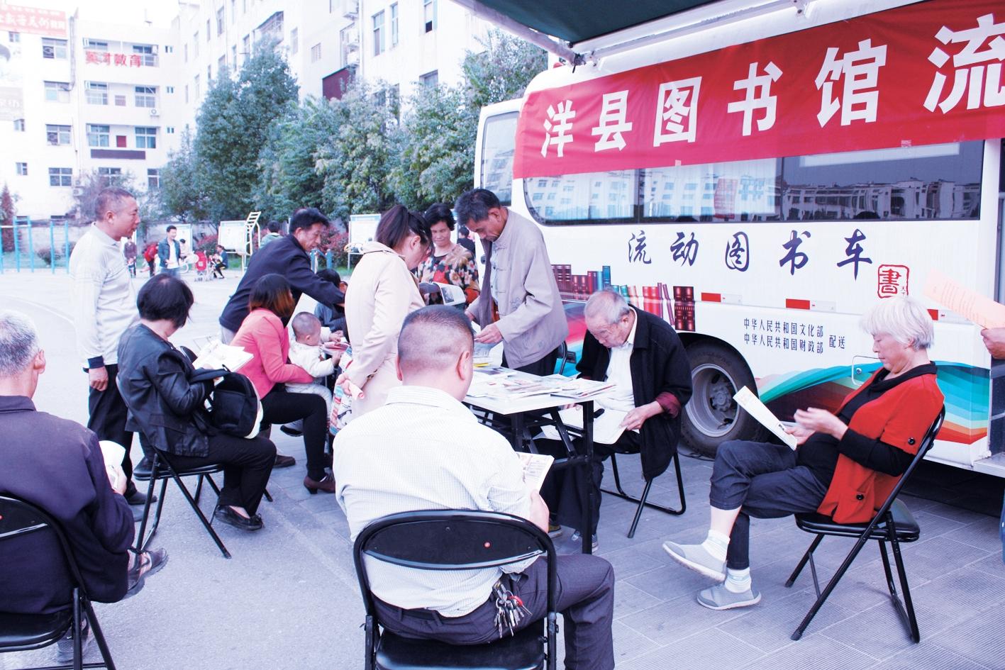 洋縣流動(dòng)圖書(shū)車(chē)走進(jìn)社區(qū)(洋縣文化和旅游局供圖)