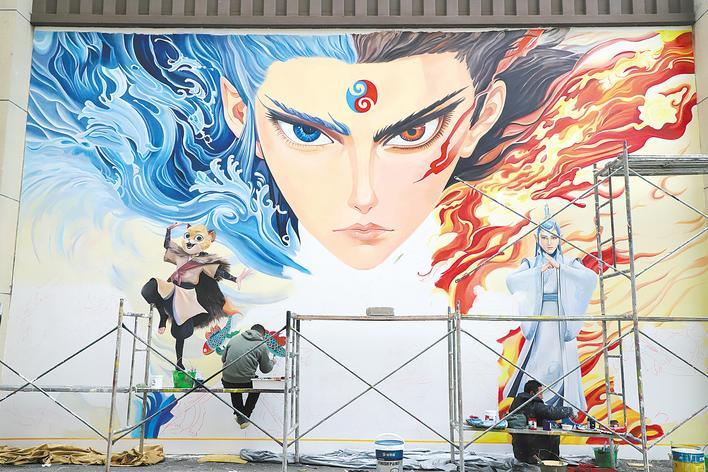 春節(jié)期間,隨著電影《哪吒2》上映,宜都當(dāng)?shù)匾患夜菊业烬復(fù)ソ?,請他在一?0平方米的墻上畫“哪吒”,預(yù)算2萬元左右。為了在墻上畫好這些角色,龔?fù)ソ芄獠季謽?gòu)思就花了大半個(gè)月。