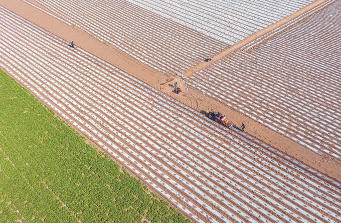 泗洪縣雙溝鎮(zhèn)雪三村花生種植基地機(jī)械化春耕場(chǎng)景。張連華 攝